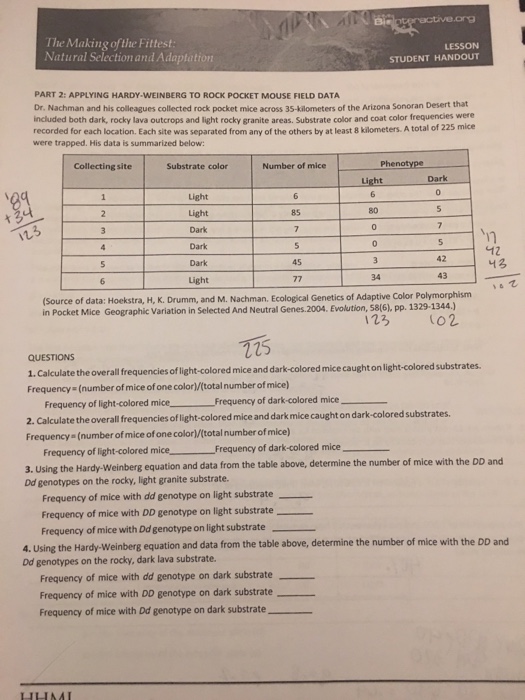 Lab: Natural Selection Student Guide Answer Key - Solved: Dr. Nachman And His Colleagues Collected Rock Pock ...